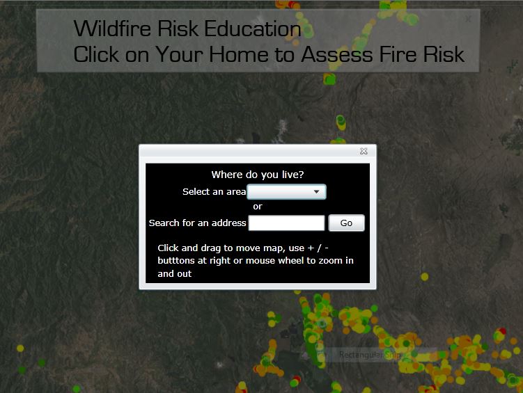 We have created this website to give you information about your Risk from Wildfire. We want to help you plan before a wildfire happens, and give you tools and information to help you when a wildfire does start. The website lets you look at your property and see how you can reduce your risk. You can observe your home’s risk score and change things about your construction (e.g. roof material) that will help lower the risk score. This information will help you become educated about these issues and help keep First Responders safe when they are fighting fire in your area.